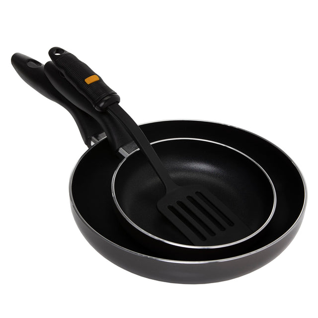 Royalford RF4126FP Frying Pan Deluxe Value Set - Portable Non-stick Coating with Cool Touch Handle | Dishwasher Safe | Twin Fry Pan Set, 18 cm, 26 cm, Turner Included, Fry Pan Set