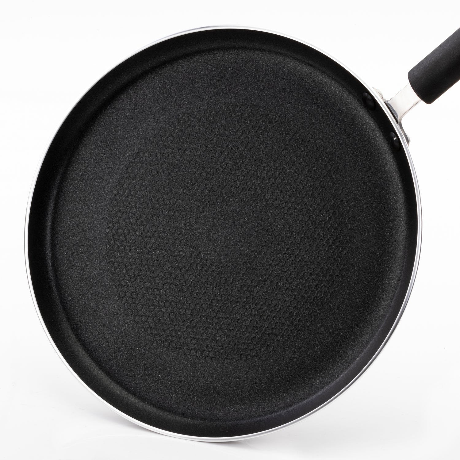 Prepare perfect pancakes, dosas, crepes, omelettes, and flatbreads effortlessly with the Royalford RF6081 28cm Non-Stick Pan Caker. Designed with special grooved non-stick technology, this flat pan ensures quick release, even cooking, and minimal oil usage for healthier meals. The 3mm thick heavy-gauge body delivers consistent heat distribution, while the induction-compatible base makes it suitable for all cooktops including gas, electric, ceramic, and halogen. Featuring a strong, ergonomic handle, this pan offers stable control and safe handling during cooking. Durable, easy to clean, and dishwasher safe, the Royalford RF6081 is an essential addition to any modern kitchen for fast, smooth, and mess-free cooking.