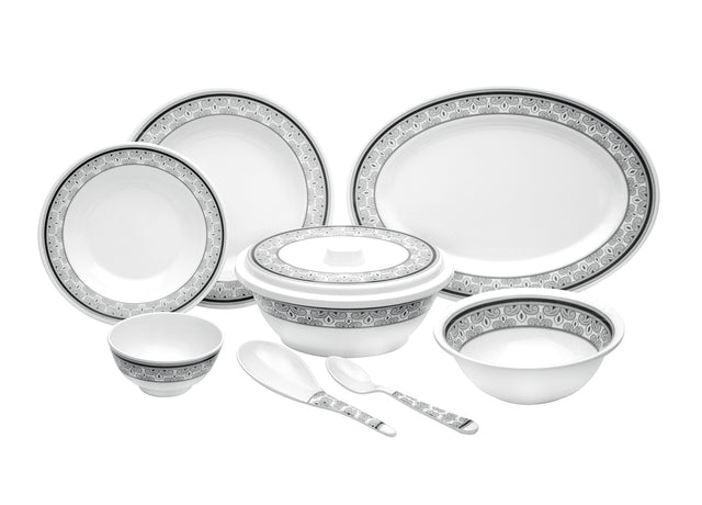 Upgrade your dining experience with the Royalford RF6721 Melamine Ware 40-Piece Dinner Set, designed for elegant everyday use and special family gatherings. Crafted from high-quality melamine, this dinnerware collection combines durability, style, and practicality, making it an excellent choice for homes that value beauty and convenience. Featuring a graceful grey pattern with a premium glossy finish, this set is lightweight, break-resistant, stain-resistant, and easy to clean. The assortment includes plates, bowls, spoons, and serving essentials—perfect for serving a complete meal for the whole family. Whether you're hosting dinner for guests or plating a simple home meal, this comprehensive set adds sophistication to every table.