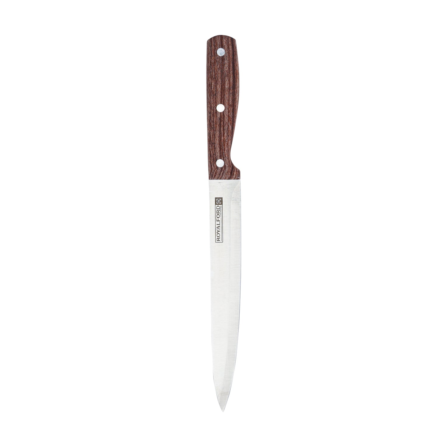 The Royalford RF9661 Stainless Steel Slicer Knife is designed for precision slicing and effortless cutting in everyday kitchen tasks. Featuring a long 8-inch stainless steel blade, this knife delivers clean, uniform slices for meat, fish, fruits, and vegetables. The razor-sharp edge ensures smooth performance while maintaining durability and resistance to corrosion. Its eco-friendly wooden finish handle offers a comfortable, well-balanced grip, allowing better control during extended food preparation. Ideal for both home kitchens and professional use, this slicer knife combines sharpness, strength, and elegant craftsmanship for superior cutting efficiency.
