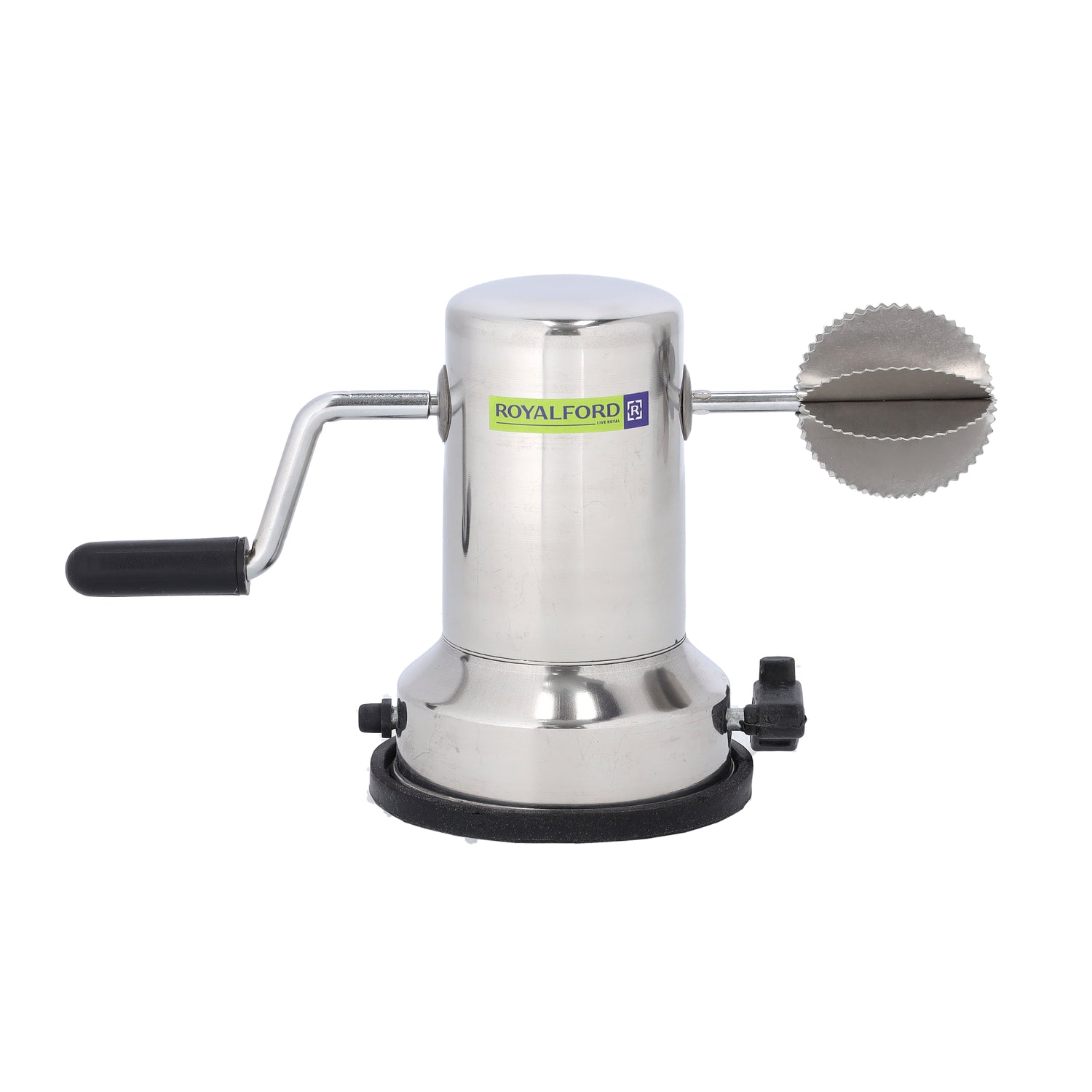 Prepare fresh coconut effortlessly with the Royalford RF9709 Coconut Scraper, designed for efficient, safe, and comfortable use. Equipped with sharp, rust-proof stainless steel blades, this manual coconut scraper delivers smooth and effective scraping with minimal effort. The easy-to-operate gripped handle provides excellent control, while the strong vacuum base lock ensures a firm grip on countertops for safe and stable operation. Its stylish mirror-finish stainless steel body adds a premium look to your kitchen while ensuring long-lasting durability. Ideal for everyday cooking, especially for Indian and Asian cuisines, this coconut scraper is convenient to use, easy to clean, and compact for storage. A perfect blend of performance, safety, and elegance, it is also packed in a gift box, making it suitable for gifting.