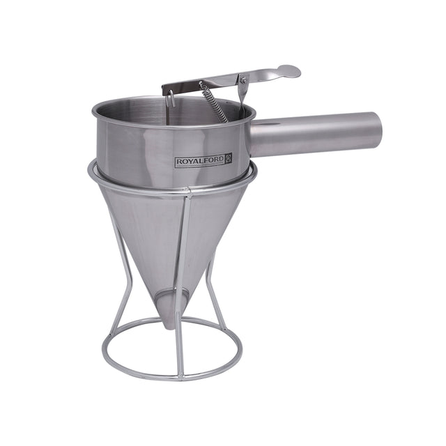 Royalford RF9770 Batter Dispenser - Portable Stainless Steel Body | Pancake Dispenser 1.3L Funnel Dispenser with Rack Supplement | Fill Hollow Chocolate Bodies with Delicacies Like Liqueurs, Jellies & Creams