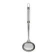 Serve your soups, gravies, sauces, curries and stews with ease using the Royalford RF9852 Stainless Steel Soup Ladle. Designed for daily kitchen use, this ladle is crafted from high-quality stainless steel that ensures durability, rust resistance and long-lasting performance. Its deep round bowl allows generous scooping, making serving quick and efficient, while the sturdy handle provides a comfortable and secure grip.The sleek polished finish adds a modern touch to your kitchen utensils, and the hanging loop design allows convenient storage when not in use. Whether for home kitchens, restaurants, or parties, this soup ladle is a reliable and essential serving tool.