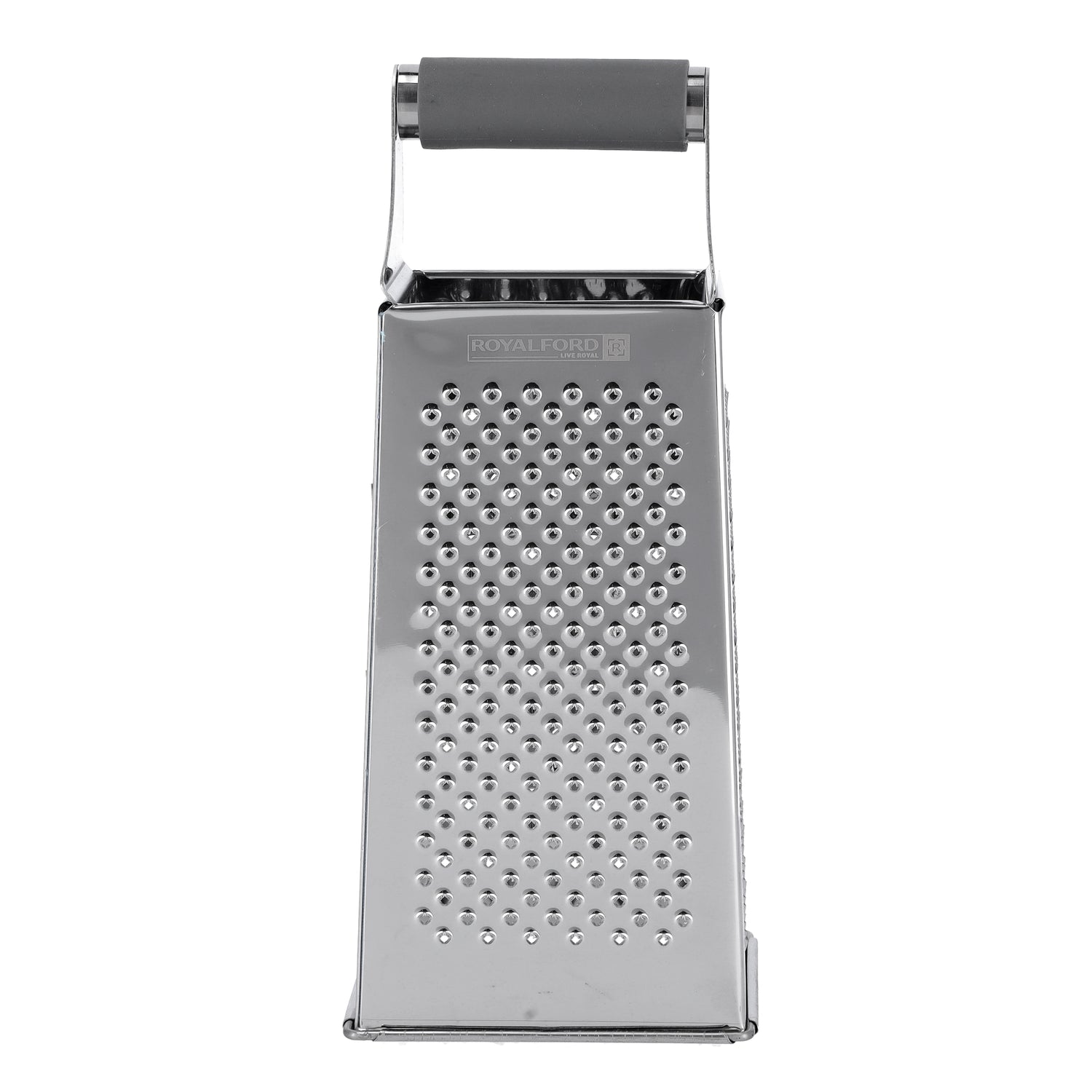 Upgrade your kitchen essentials with the Royalford RF9865 4-Sided Grater, designed for effortless grating, slicing, shredding, and zesting. Made from premium food-grade stainless steel, this durable grater gives you precision performance and long-lasting strength for daily cooking needs. With four functional sides, it allows you to grate cheese, vegetables, fruits, chocolate, citrus zest, spices, and more with ease. The ultra-sharp blades ensure smooth performance, while the strong, sturdy construction maintains stability during use. Featuring an ergonomic PP easy-grip handle, this grater offers excellent comfort and control, making kitchen prep safer and more convenient. Easy to clean and dishwasher-safe, the Royalford RF9865 is ideal for home kitchens, restaurants, catering use, and everyday cooking enthusiasts looking for efficiency, durability, and professional results.